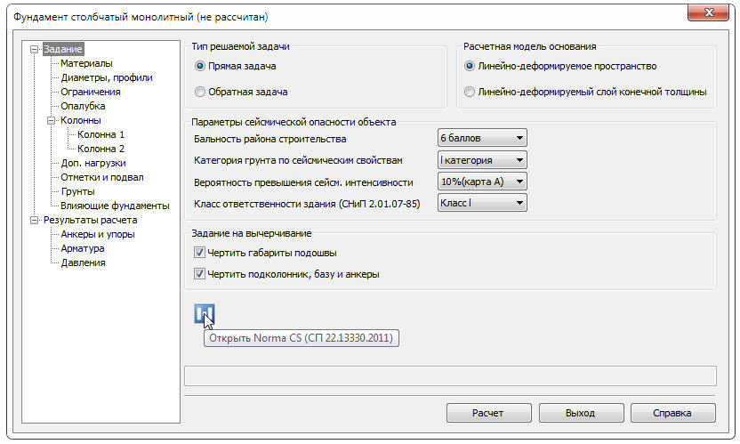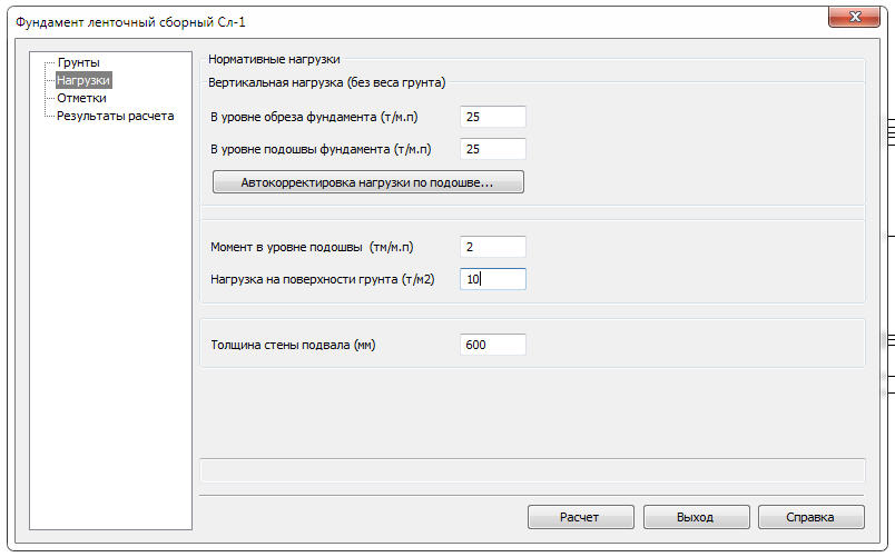 Расчет монолитного ленточного фундамента с формированием файла отчета по результатам;