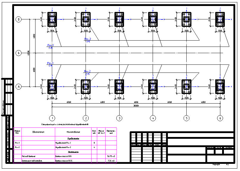 Раскладка верхних и нижних сеток подошвы или отдельных стержней на схеме расположения по данным расчета;