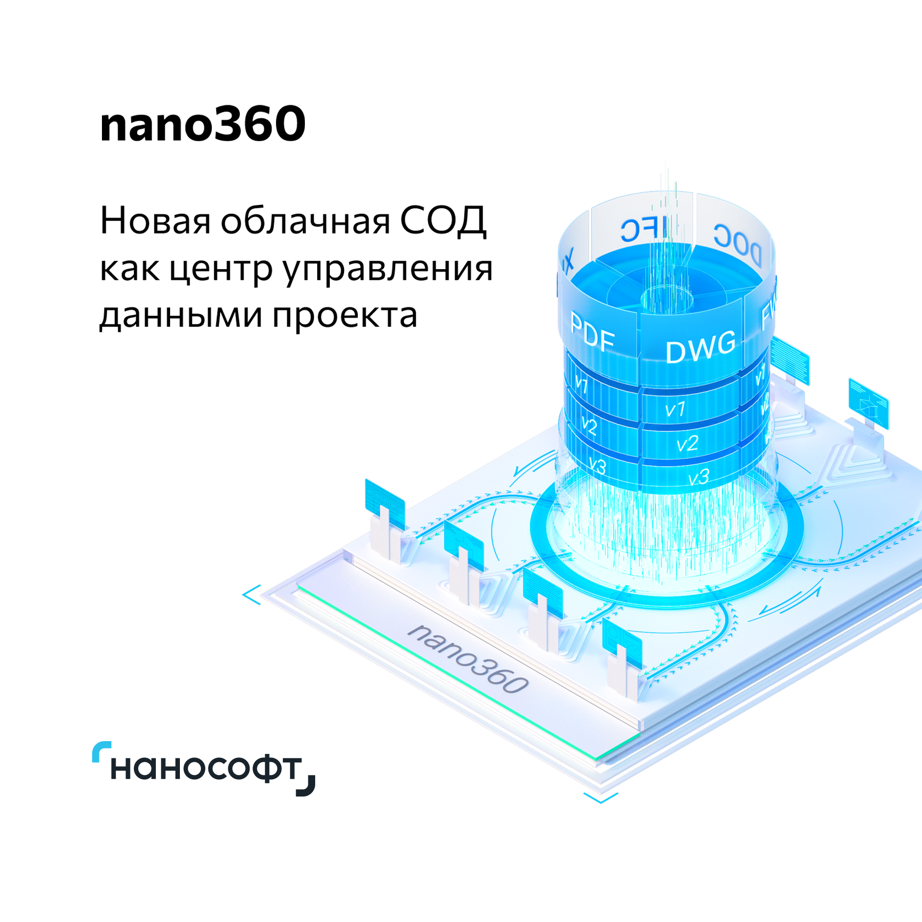nano360 – новая облачная среда общих данных для хранения, согласования и обмена информацией по проекту. Позволяет работать с файлами разных форматов: DWG, IFC, PDF, DOCX и др.