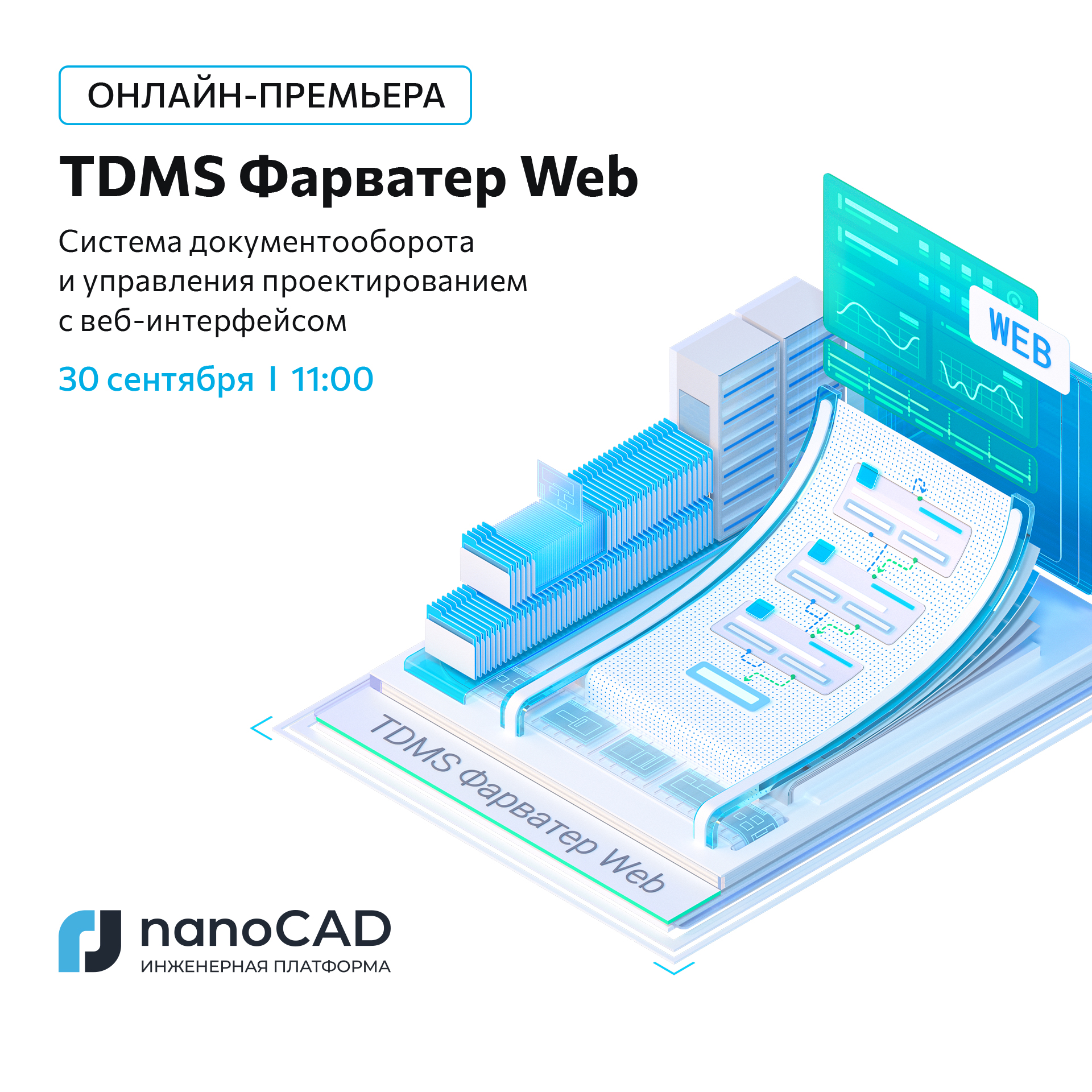 Компания «Нанософт» приглашает на премьеру TDMS Фарватер Web - новой системы с удобным веб-интерфейсом для документооборота и управления проектированием в строительстве.