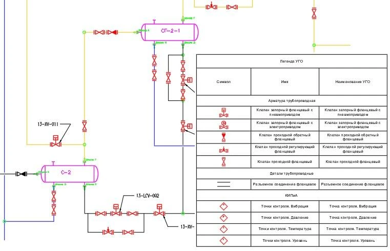 Основой для создания схем в Model Studio CS Технологические схемы является набор условных графических обозначений (УГО) элементов. В стандартную поставку программного комплекса уже включены наборы типовых УГО технологического оборудования и арматуры — с перечнем основных технологических параметров, доступных для заполнения после размещения на чертеже.