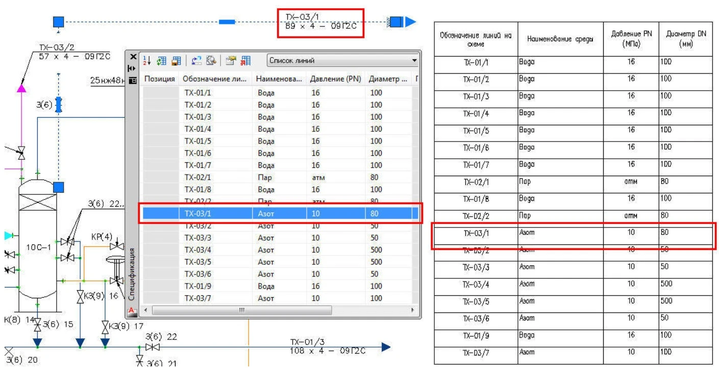Model Studio CS Технологические схемы автоматически формирует высококачественные табличные документы на основе созданных схем.